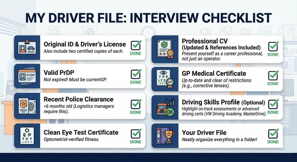 Use the phrase “Proactive Pre-Trip Inspections.” Fleet managers hate reactive maintenance (fixing things after they break). If you state that you are diligent about checking oil, water, and tyre pressure daily, you’re telling them you will save them money on repairs.